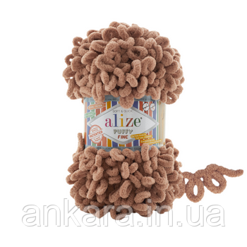 Фантазійна пряжі Alize Puffy Fine - плюшева дитяча пряжа з м'якою текстурою для в'язання руками без спиць. Цікава велюрова букльована нитка складається з великих петельок, які при в'язанні руками переплітаються. На дотик пряжа дуже м'яка і повітряна, в'язати їй надзвичайно легко, швидко і приємно. Пряжа аналогічна популярній пряжі Alize Puffy, але тонше неї майже в два рази.